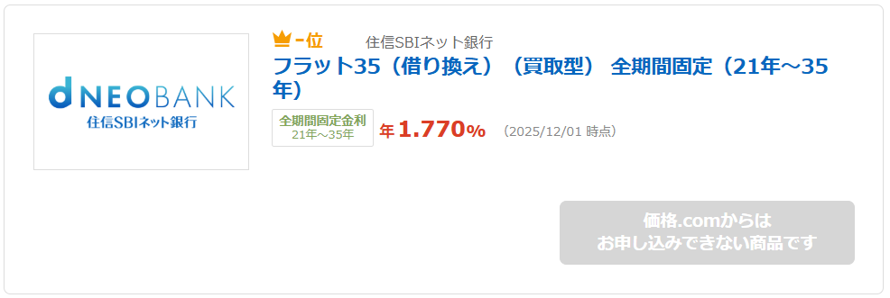価格コムで調べたら、この2つの銀行がフラット35安くて良さそう